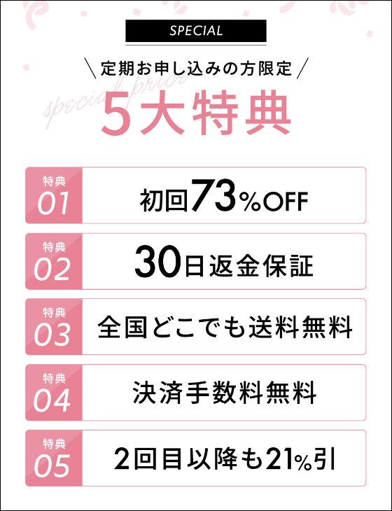 加えて下記の5大特典を受けることができます。