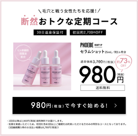 この記事ではセラムショットを980円で購入する方法と、詳細について取り上げてきました。